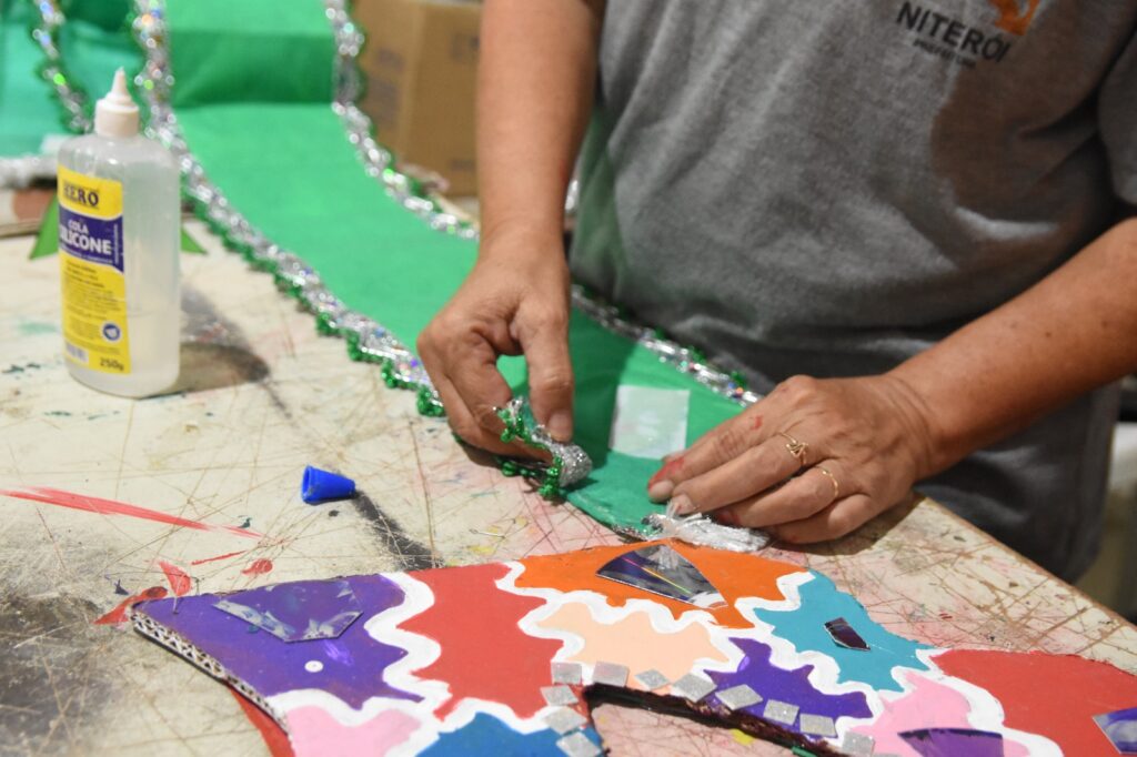 “A nossa equipe tem muito orgulho de realizar todo esse trabalho com resíduo que foi jogado fora e nós aproveitamos. A reciclagem é um trabalho que envolve muito cuidado, criatividade e reaproveitamento de tudo. Vai ficar muito bonito no nosso bloco”, garantiu Rosineide.