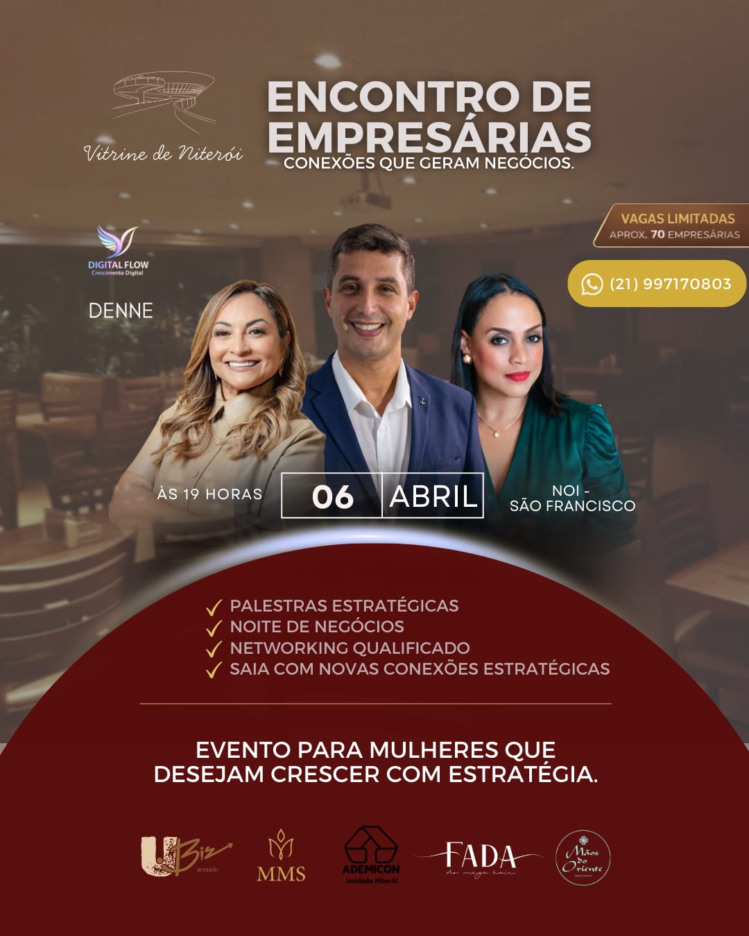 O evento foi preparado para proporcionar uma noite especial de aprendizado, inspiração e fortalecimento da rede de negócios femininos em Niterói.