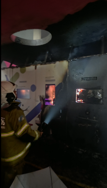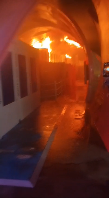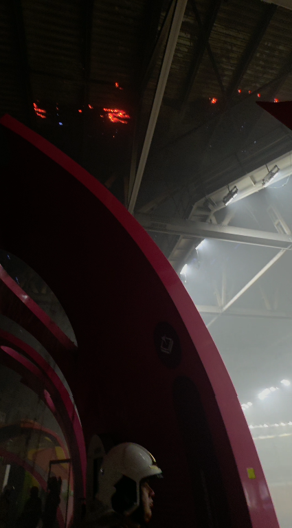 De acordo com as primeiras informações, as chamas atingiram apenas a cobertura da estrutura. Não houve registro de feridos.