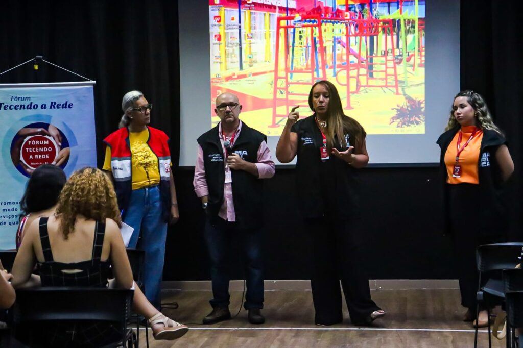08/04 – A Prefeitura de Maricá, por meio da Secretaria de Assistência Social e Cidadania, realizou nesta terça-feira (07/04) o primeiro encontro do Fórum Tecendo a Rede em 2026. O evento em parceria com as secretarias de Justiça e Cidadania e Segurança Cidadã promoveu diálogos sobre o tema “Segurança Pública e Programas Existentes no município” no Centro de Artes e Esportes Unificados (CEU), na Mumbuca.