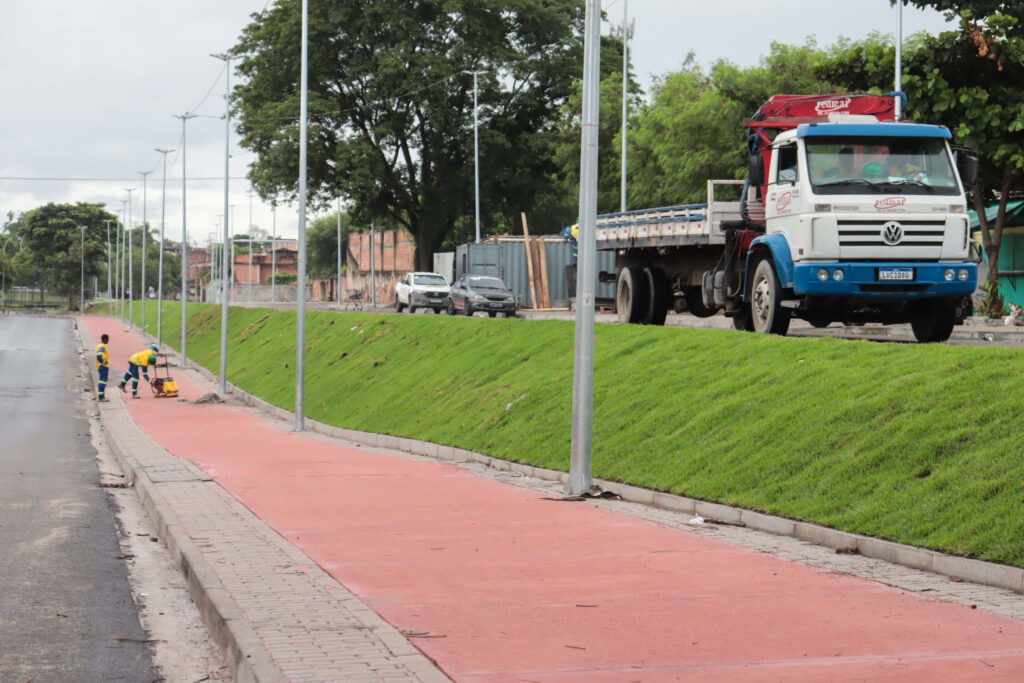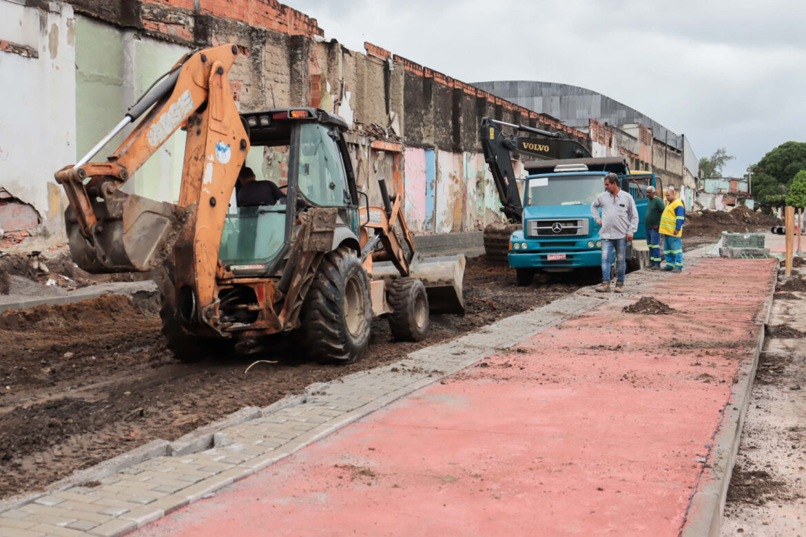 11/03 – As obras do trecho 6 do MUVI estão transformando o visual do bairro Jardim Catarina e já recebem a aprovação da população. Em um trecho da Rua José Rosendo de Souza estão sendo feitos trabalhos de limpeza e troca de solo de via, além de drenagem, construção de vagas para veículos e calçada. Em um outro lado da via, já é possível ver pavimentação, ciclovia e paisagismo prontos.