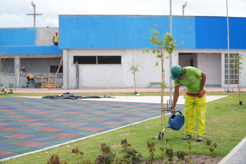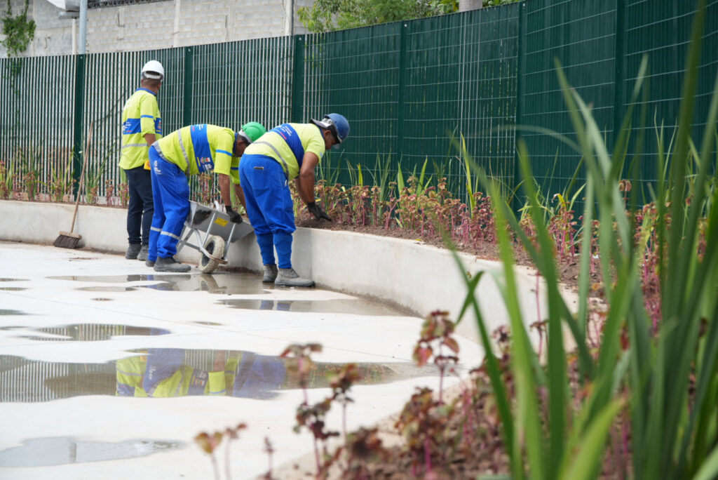 As equipes da Secretaria das Cidades estão trabalhando em várias frentes. Já foi concretado o piso da área do food truck, a cascata de águas está tomando forma, as quadras estão sendo finalizadas e o piso emborrachado do parque infantil foi instalado. A Secretaria de Conservação da Prefeitura de São Gonçalo está realizando o plantio de centenas de árvores frutíferas, além de colocação da grama.