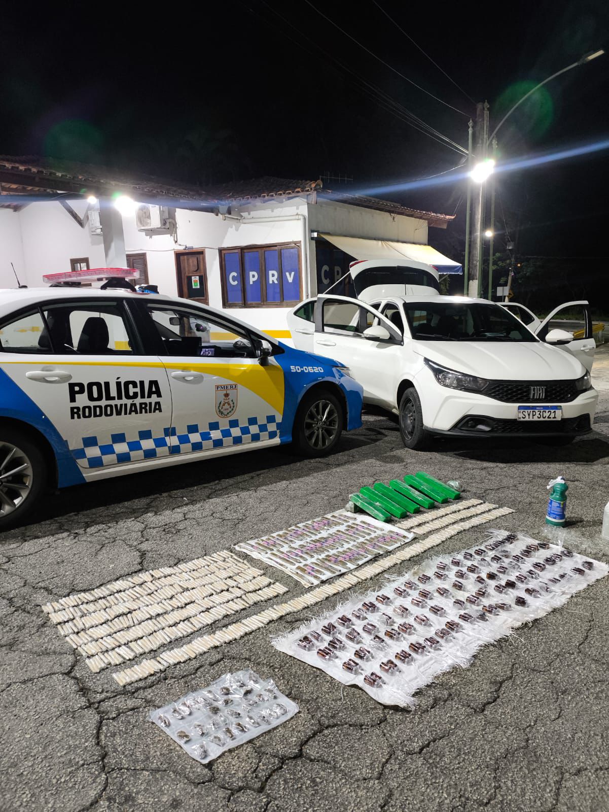 10/04 – Na madrugada desta sexta-feira (10), policiais militares do CPTran – 3ª CTRv – Posto 3.11, em Piraí, prenderam dois indivíduos acusados de tráfico ilícito de drogas durante fiscalização de rotina na RJ-145, Km 27,5, bairro Rosa Machado.
