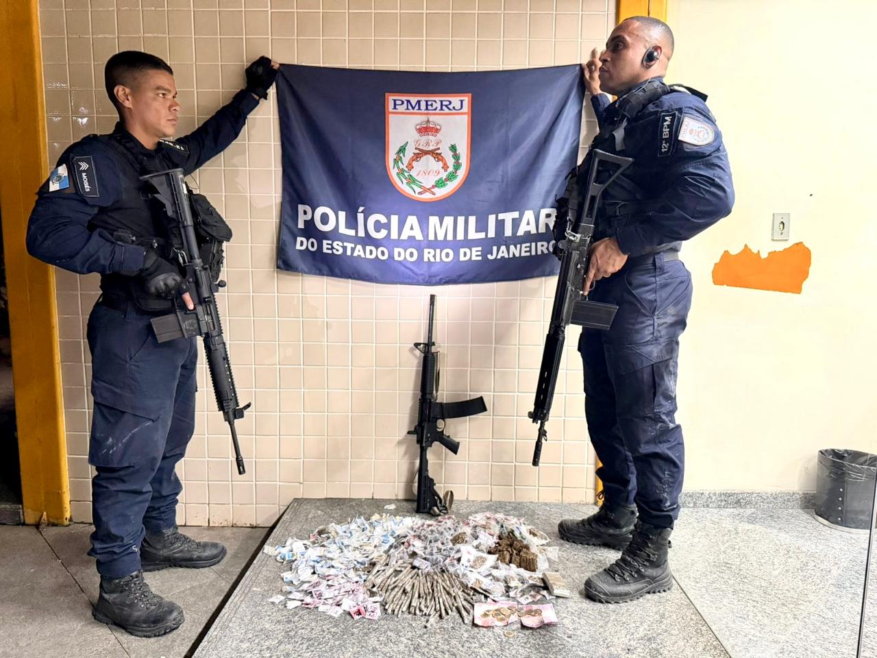 11/04 – Na tarde desta sexta-feira (10), policiais militares do 12º BPM – Niterói, sob comando do Tenente-Coronel Júlio Cesar, realizaram uma operação na Comunidade da Vila Ipiranga que resultou na prisão de quatro indivíduos e na apreensão de um fuzil calibre 5.56 com numeração suprimida, além de drogas e equipamentos utilizados pelo tráfico.
