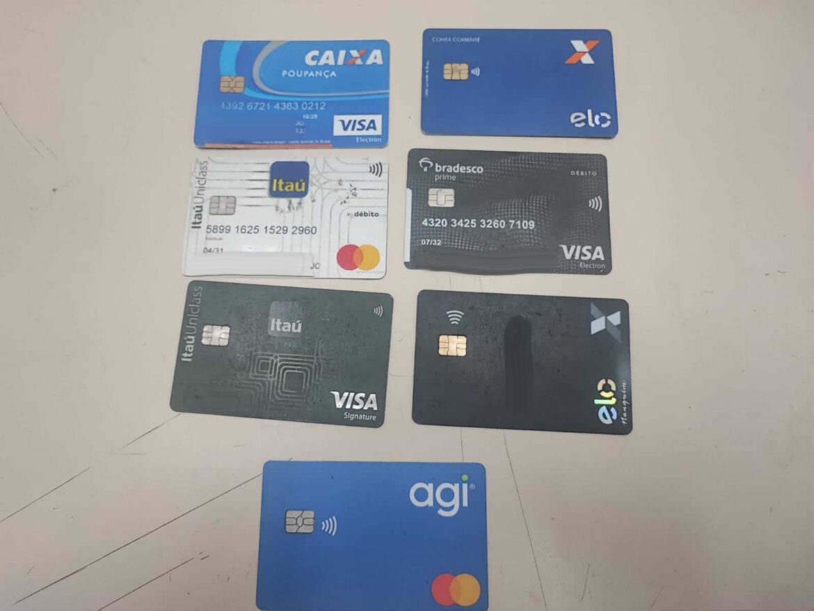 Durante patrulhamento, os agentes avistaram o suspeito abraçado a um senhor. Ao perceber a aproximação da viatura, o homem se afastou e tentou disfarçar, mas foi abordado. Na revista pessoal, foram encontrados sete cartões bancários em sua posse.