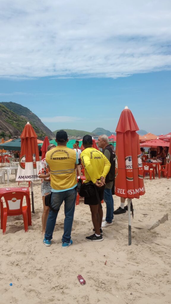A força-tarefa que atua nas 12 praias da cidade é coordenada pela Secretaria Municipal de Ordem Pública (Seop) e pelo Centro Integrado de Segurança Pública (CISP). A Operação Verão da Prefeitura de Niterói mobiliza diversos órgãos municipais. A operação, que termina em março, envolve servidores da Guarda Municipal, da Companhia de Limpeza Urbana (Clin), da Saúde, da Defesa Civil, da Nittrans, da Superintendência de Terminais e Estacionamentos de Niterói (SUTEN), entre outras áreas. Entre as ações, estão o reforço no ordenamento de ambulantes, o combate a estacionamentos clandestinos e a fiscalização ambiental nas áreas de restinga. O trabalho incluiu ainda ações educativas, com orientação direta aos usuários das praias sobre os limites de ocupação do espaço público. Além disso, os agentes também atuam coibindo caixas de som na areia e churrasqueiras.