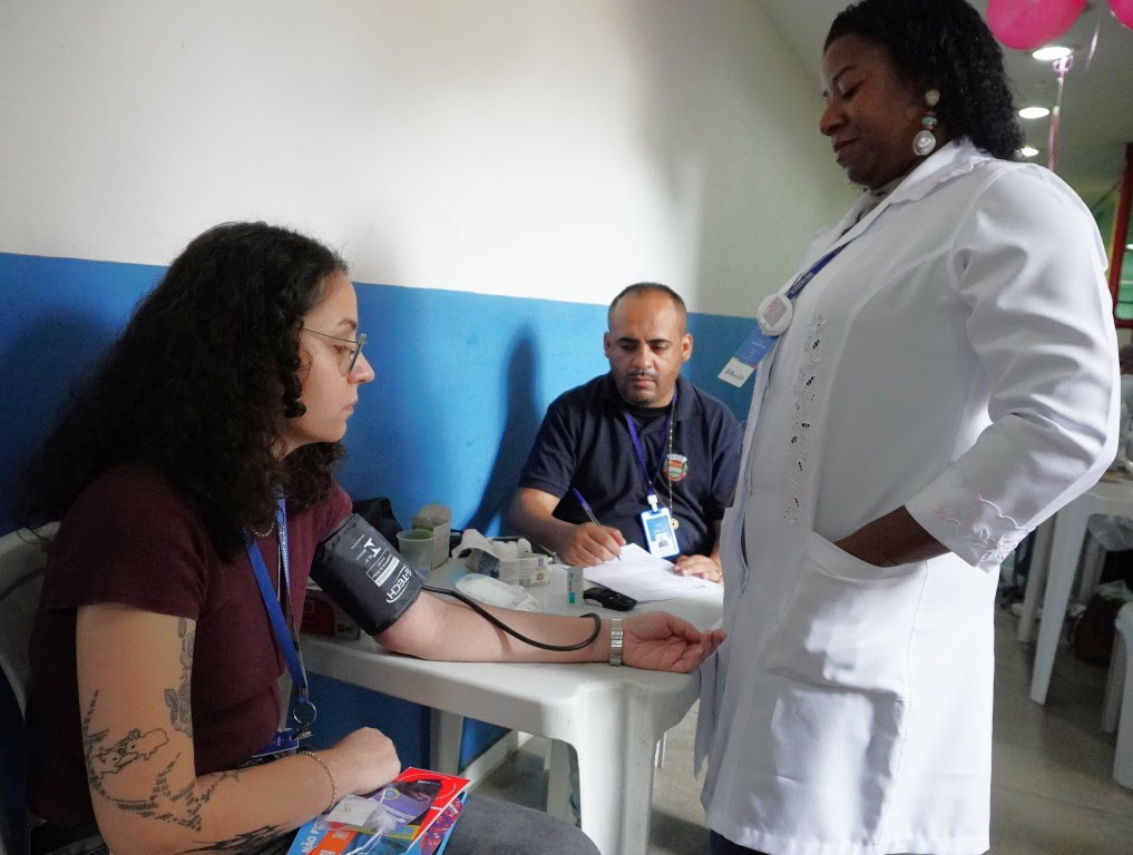 A Funasg também marcou presença com ações de prevenção e promoção à saúde, realizando aferição de glicose e pressão arterial, auriculoterapia, vacinação contra gripe e Covid-19, além de testagem para Infecções Sexualmente Transmissíveis (ISTs).