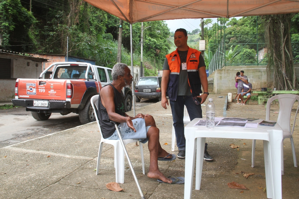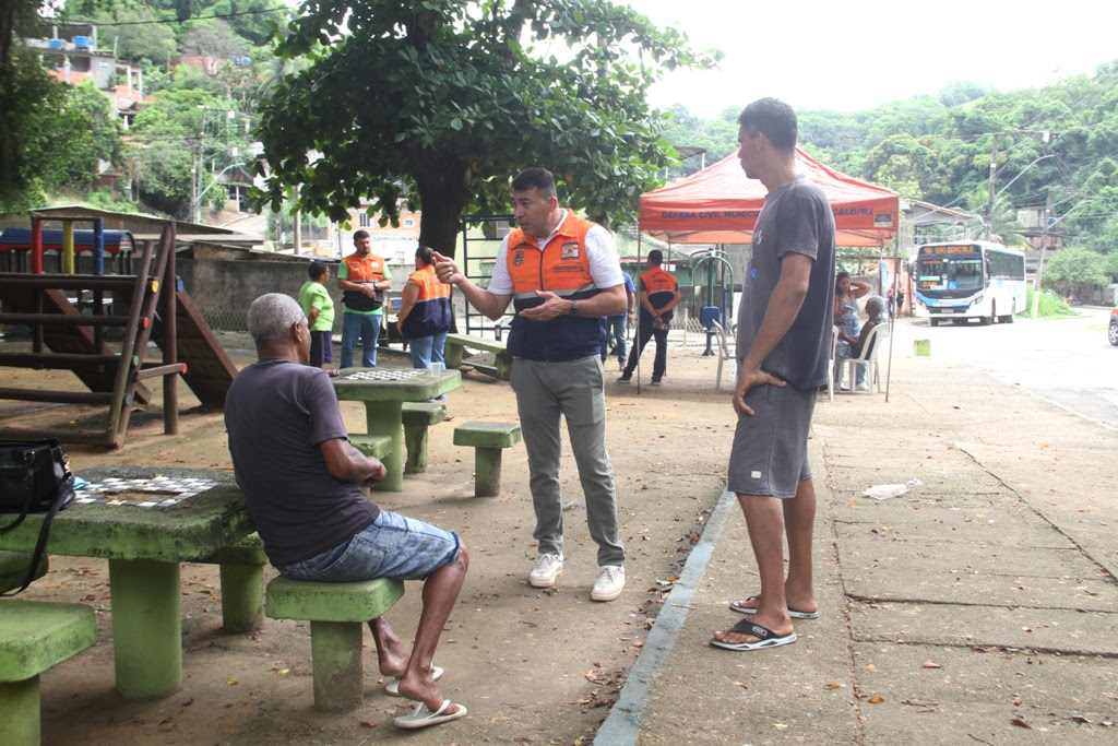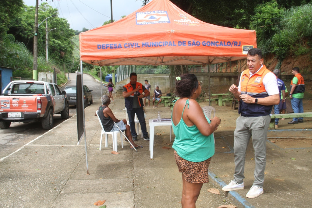 No local, foi montada uma barraca com uma mesa e cadeiras, onde os agentes da Defesa Civil puderam trocar experiências com os moradores do bairro. Foi o que explicou o major Felipe Assumpção, subsecretário de Defesa Civil.