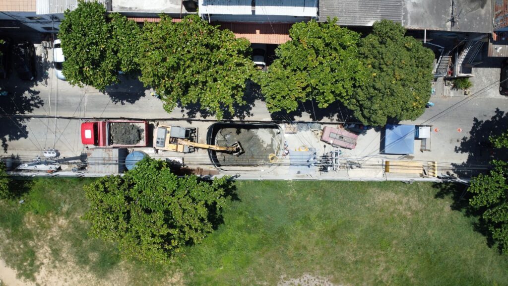 Para reduzir o impacto na rotina dos moradores, a instalação do tronco coletor na Rua Principal será feita por meio de um método construtivo não destrutivo. A tecnologia utiliza equipamentos conhecidos como “tatuzinhos”, quatro ao todo, de diferentes tamanhos, que vão trabalhar simultaneamente. Eles escavam o subsolo ao mesmo tempo em que avançam instalando a tubulação. Assim, não é preciso abrir grandes valas nem bloquear ruas inteiras. A intervenção se limita a pequenos canteiros de obra, o que torna o processo mais rápido, eficiente e com menos transtornos para os moradores.