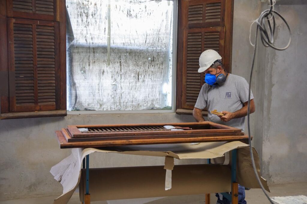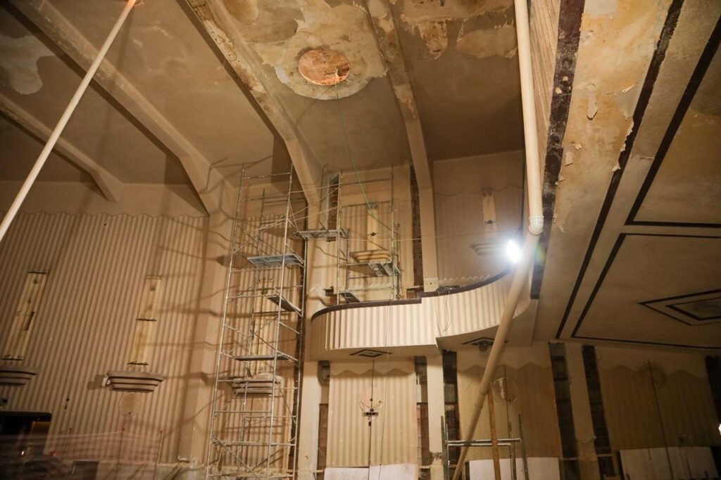 Com investimento de R$ 45,7 milhões, as intervenções no antigo Cinema Icaraí seguem em ritmo acelerado. Na parte externa, as equipes finalizam o emboço da fachada, que passará por restauração completa. No salão de concertos — onde funcionava a antiga sala de exibição — a limpeza já foi concluída e o palco, concretado, está em fase de ampliação.